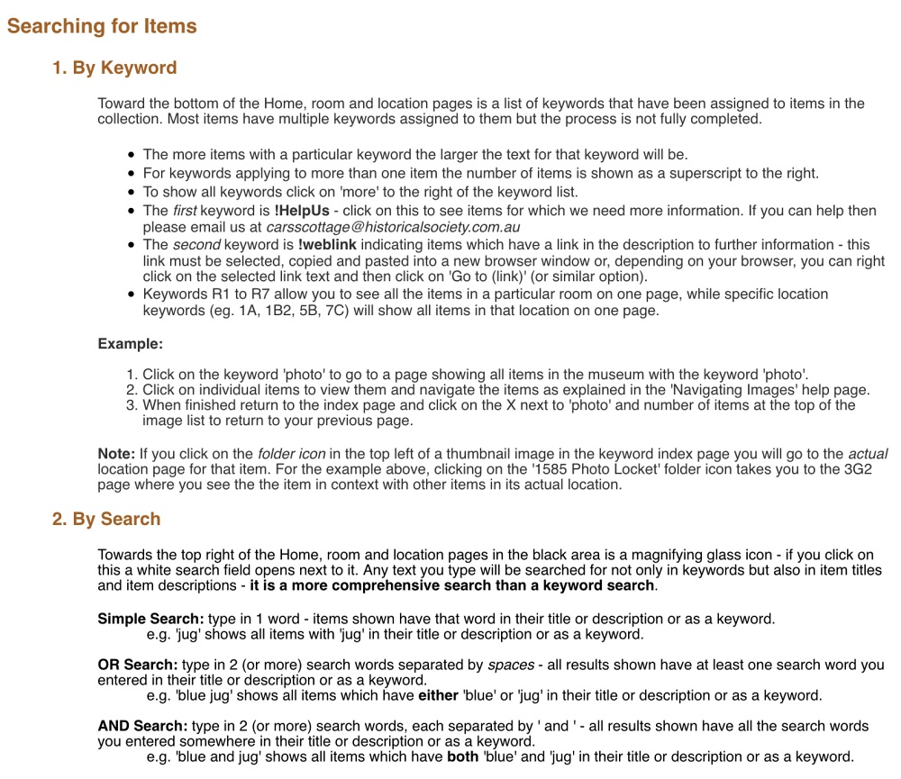 Museum Plan & Key 1: Plan & Key Site Navigation Viewing Images Searching for Items Keywords New images 1A
